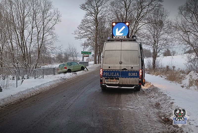Dzisiaj o poranku mieliśmy już także jedno groźnie wyglądające zdarzenie drogowe. Jadący ul. Jasną w Boguszowie-Gorcach w kierunku Czarnego Boru 38-letni mieszkaniec powiatu wałbrzyskiego, również z powodu niedostosowania prędkości do panujących warunków na jezdni, stracił panowanie nad prowadzonym pojazdem i zjechał na pobocze, zatrzymując się praktycznie przy samych barierkach. W tym przypadku mundurowi ukarali mężczyznę mandatem karnym w kwocie 100 złotych oraz odebrali dowód rejestracyjny pojazdu za uszkodzenia.