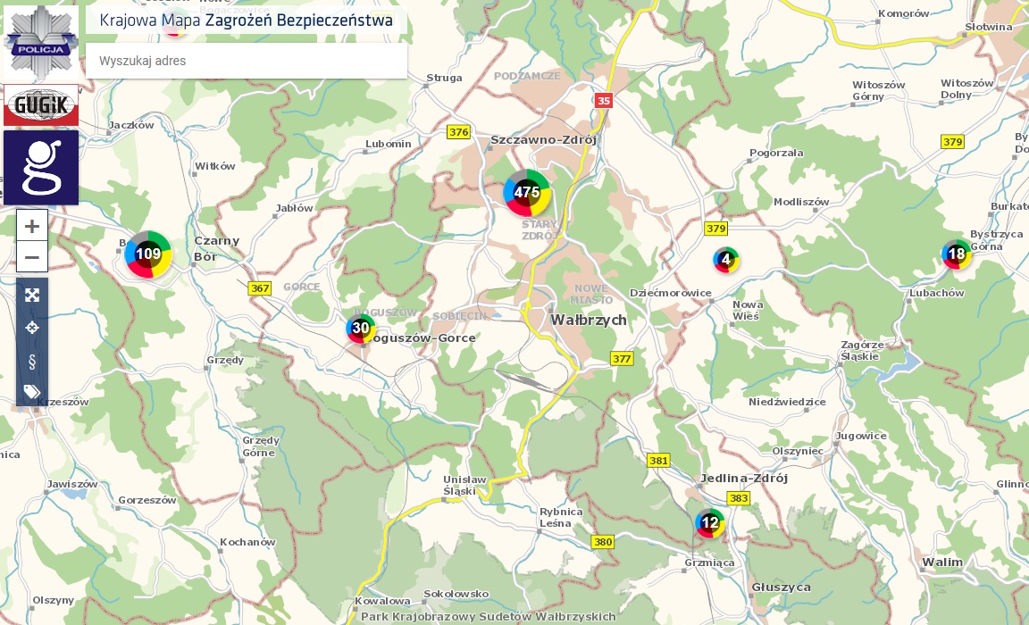 Przypomnieć należy zasadę działania Krajowej Mapy Zagrożeń Bezpieczeństwa. Funkcjonariusze dokładnie sprawdzają każde zgłoszone zagrożenie. Następnie dokonywana jest pełna analiza ilości zgłoszeń w danym miejscu. W przypadku wielokrotnego ich potwierdzenia, patrole otrzymują do zadań stałych wytypowane rejony służbowe. Głównym celem działania policjantów w każdym przypadku jest całkowite wyeliminowanie zagrożeń dotyczących zakłócania bezpieczeństwa oraz porządku publicznego na terenie naszego miasta oraz całego powiatu wałbrzyskiego.